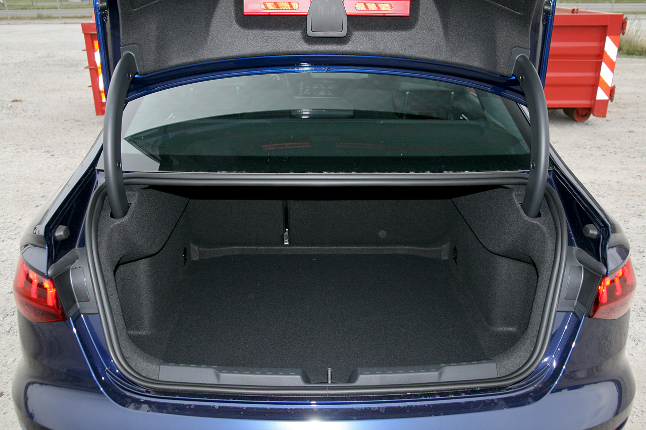 Sedanens bagagerum tager 425 liter og dermed 45 liter mere end Sportback. Men da åbningen til det udvendige bagagerum i sagens natur er mindre, vil man i mange tilfælde ikke opleve sedan-bagagerummet som større.