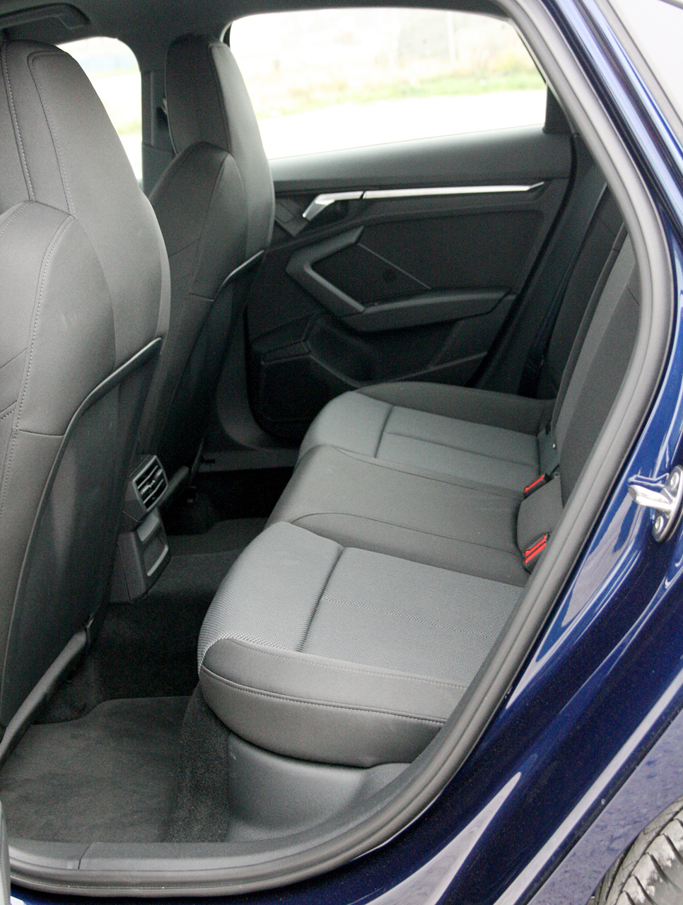 Pladsen på bagsædet er godkendt til to voksne - hvis ikke de er for høje og for langbenede. For sedan-karrosseriets skrånende taglinje stjæler hovedhøjde i forhold til den 5-dørs Sportback, og der er marginalt mindre plads til knæene end i BMW 1-serie. I forhold til Mercedes A-Klasse er knæpladsen nogenlunde den samme. Og så skal man ikke spilde tid på at ærgre sig over, at de billigere fætre - Golf, Octavia og Leon - er mere gavmilde med pladsen på bagsædet.