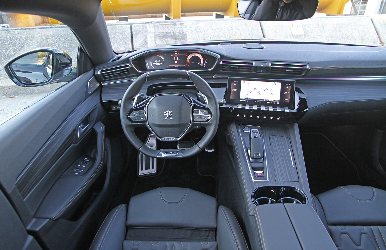 Mange fik beaujolais'en galt i halsen, da Peugeot introducerede deres i-Cockpit, hvor man kigger på højt placerede instrumenter over og ikke igennem et lille go-kart rat. I 508 er konceptet finpudset med fuld digital instrumentering, en række lækre touch-knapper og ikke mindst en bedre ergonomi end nogensinde tidligere i en Peugeot. Undertegnede på 190 cm har sjældent siddet godt i Peugeots-modeller – nu stemmer forholdet mellem rat, sæde og pedaler nærmest perfekt. Apropos: Med overtagelsen af Opel har Peugeot fået adgang til tyskernes fine 'aktion sund ryg' stole, der løfter siddekomforten en hel klasse. Alt i alt er førerpladsen i 508 både futuristisk og komfortabel.