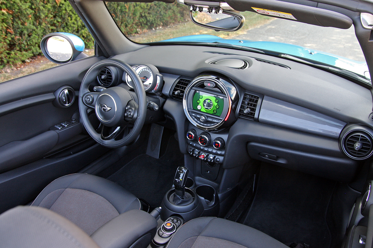 Mini udenpå og maxi indeni – i hvert fald bag rattet, hvor ingen andre biler under fire meter tilbyder så 'voksen' en førerplads. Ergonomien er fremragende, fordi selv store chauffører kan sidde med strakte ben og tæt på det næsten lodretstående rat. Siddekomforten er høj, og du har god kontakt med bilen, hvilket er med til at understrege Minis berømte 'go-kart' køregenskaber. Som chauffør har du udsigt til et cockpit, hvor cool retrostil som ure på størrelse med Big Ben og vippekontakter møder high-tech som infoskærme og fuld-LED forlygter, der nærmest gør nat til dag.