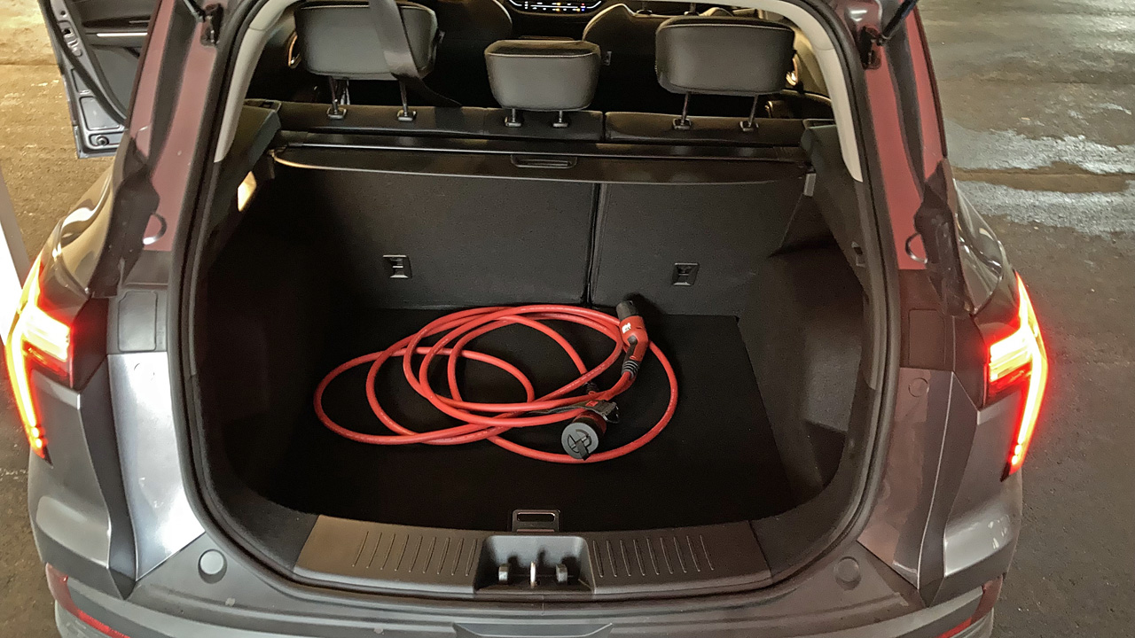 Bagagerummet er på 520 liter, men man må leve med, at der ikke er noget gemmested til ladekablerne, hverken under bunden eller under frontklappen.