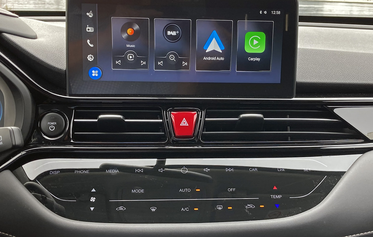 Opladning af mobiltelefonen kræver USB-A-stik, og bilens DAB-radio lider af samme syge som oplevet i andre kinesiske biler – den valgte radiostation hopper jævnligt af, så Apple CarPlay blev straks aktiveret.