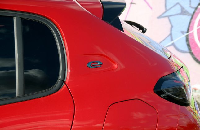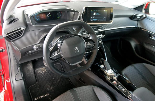Den elektriske Peugeot 208 er identisk med Opel Corsa-e og sine velformede, fossildrevne brødre. Bygget på samme platform med motor foran og træk på forhjulene. Et lille “e” på C-stolperne og bagsmækken afslører, at der under karrosseriet er batterier i stedet for brændstoftank.