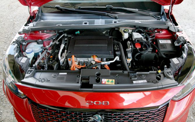 Indtil videre er det uundgåeligt, at elektriske biler vejer betragteligt mere end deres fossildrevne brødre. Således også i tilfældet e-208, der vejer over 300 kilo mere end den 1,2 liters turbobenziner med automatgear og samme mængde udstyr.