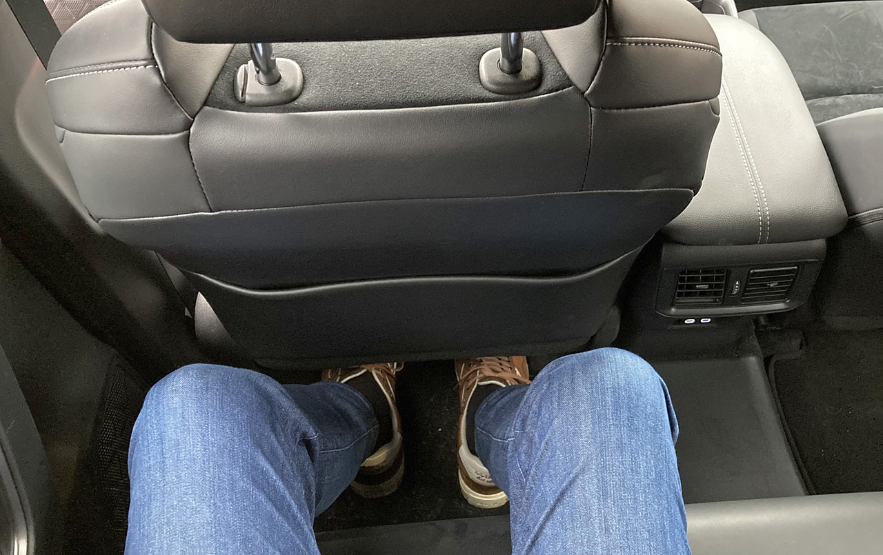 RAV4 er en stor bil, og der er på bagsædet, selv med panoramasoltag, god plads til tre voksne.