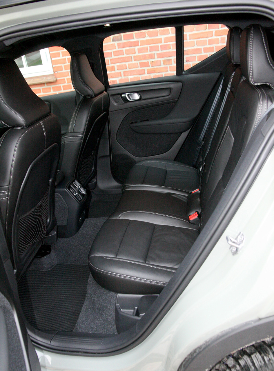 Måske kan det velstøttende sæde på grund af batterierne under bunden ikke komme helt så langt ned som i den fossildrevne XC40, men hva’? Det hører til SUV’ens natur at sidde højt.