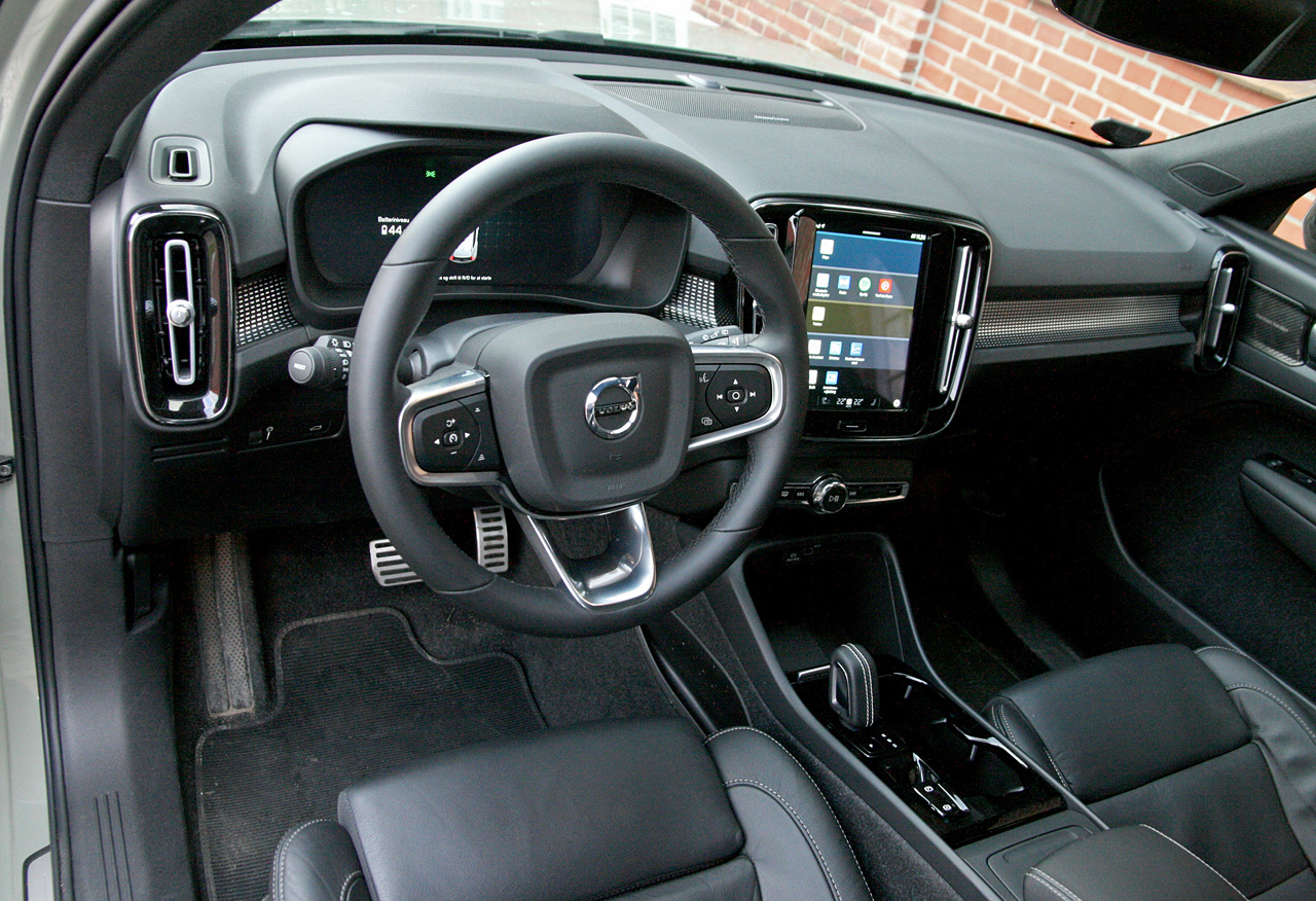 Stort set ukompliceret er dækkende for den måde, man betjener sin elektriske XC40 på. Der er nøglefri adgang, og når selen er spændt – sikkerhed først, det er jo en Volvo – berører man let bremsen, sætter i gear og træder på speederen. Når man har parkeret ved at trykke på P-knappen, forlader man bilen. Pærelet og intuitivt, næsten som at køre radiobil.