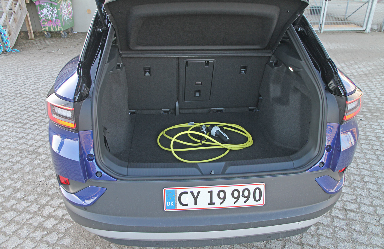 150 kW (svarer til 204 hk) til to tons elbil gør ikke ID.4 til nogen raket. Til gengæld hører du stort aldrig noget til elmotoren. Udfordringen er ID.4’s høje og brede karrosseri, der tærer på batteriet. Testugen var præget af stærk vind og lave temperaturer, og det gik hårdt ud over rækkevidden. På et tidspunkt gik turen fra Aarhus til Struer ad motor- og landevej. En retur på 280 km. Vi kørte på intet tidspunkt mere end 110 km/t, men måtte alligevel kortvarigt lade på hjemvejen for at være sikre på at nå hjem. Trods en officiel rækkevidde på 500 km, nåede vi altså at opleve rækkeviddeangst på en tur på 280 km. Ikke helt tilfredsstillende, selv om det bliver bedre i sommerhalvåret med mindre vind og højere temperaturer. Ladetiden er til gengæld godkendt: Op til 125 kW i en lynlader og 11 kW i din hjemmelader.