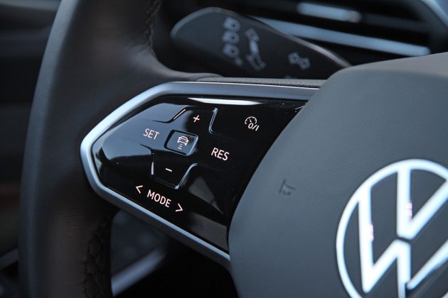 Her rykker ID.4 for alvor fra sin lillebror ID.3. Umiddelbart er design og indretning mage til, men finishen har fået et mærkbart løft. Hvor ID.3 er rustik med sin massive brug af hård plastic, er her flere bløde overflader i ID.4. Betrækket på sæderne fremstår også mere eksklusivt, men desværre skal du fortsat betale ekstra for justerbar lændestøtte – det er for fedtet. Rigtigt lækker er ID.4 ikke. Det koster kassen at udvikle nye elbiler, samtidig med at der skal betales mere end 200 mia. kr. i bøder efter dieselskandalen. VW er tvunget til at spare, og har tydeligvis måttet opgive positionen som klasseduks, når det gælder finish.