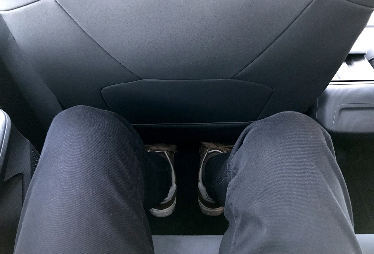Pladsen på bagsædet er virkelig fin, fraværet af kardantunnel medvirker til, at tre personer har god luft til både knæ og i højden. Cupra Born er sammenlignet med ID.3 sænket en smule, men ind- og udstigning er stadig tættere på crossover-bekvem end almindelig hatchback.