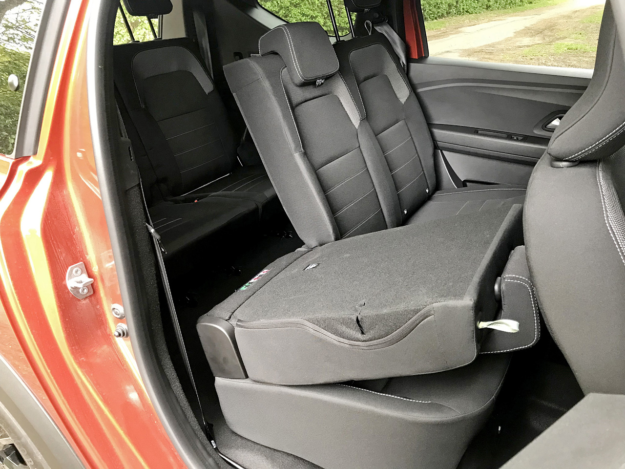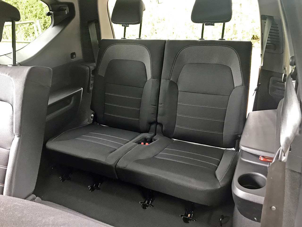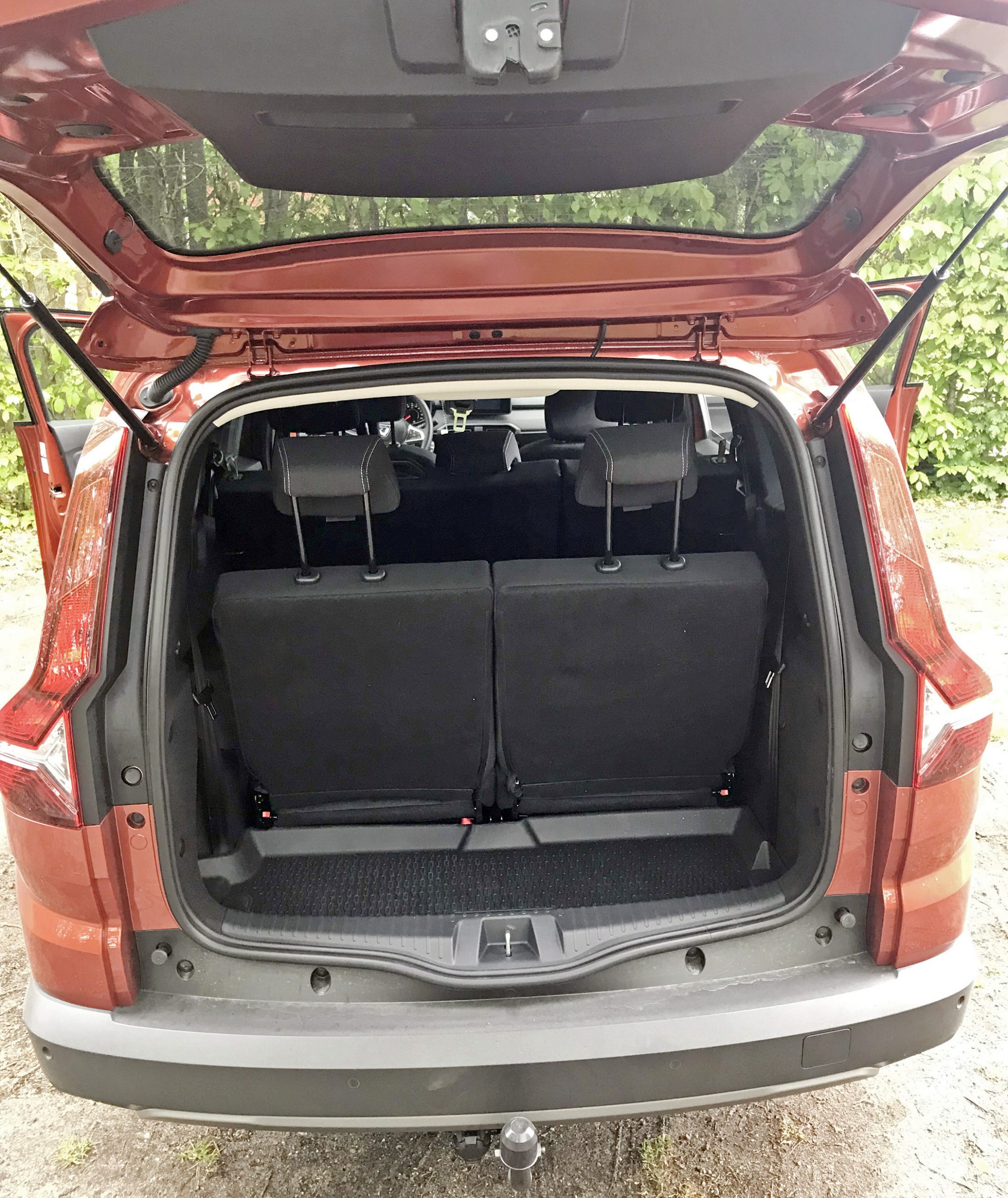 Med fem sæder i brug er bagagerummet rigeligt stort til en børnefamilie, men med syv sæder i brug tæt er det tæt på ubrugeligt til andet end indkøbsposer og små sportstasker. Som 7-sædet kan de to bagerste foldes ned i bunden eller helt tages ud og parkeres i garagen eller skuret.
