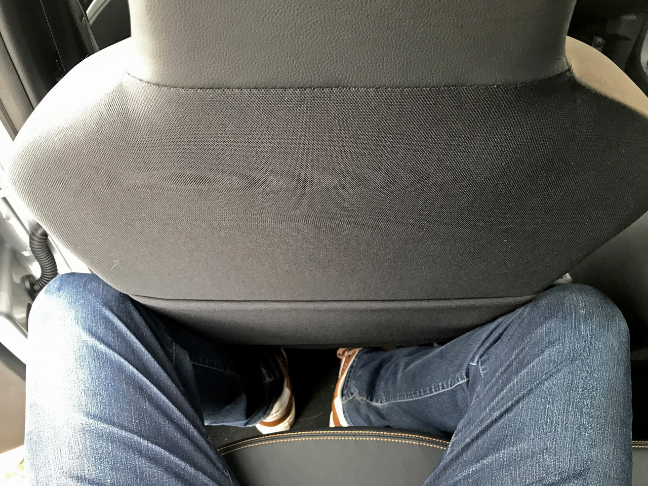 Det korte sæde, fraværet af noget at læne højre knæ op af og de lange arme gør det hurtigt ret anstrengende at være Spring-chauffør.