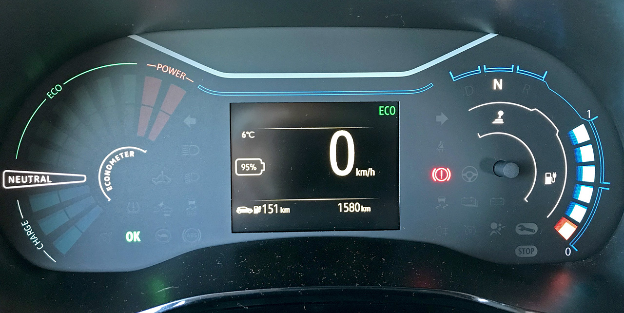 Det faktiske forbrug er nævnt i indledningen og gentages kort her: I dansk vintervejr lykkedes det ikke at hive mere end 145 kilometer ud af den. Det gode er dog, at den i instrumenthuset loyalt viser, hvor langt den vil kunne køre med det, der er på batteriet.