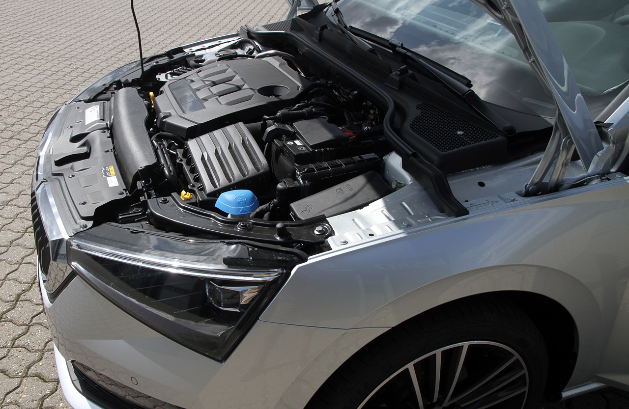 VW-koncernens 1,6 liters dieselmotor har aldrig været vores favorit i klassen. Ikke desto mindre bliver den hele tiden bedre. Oprindeligt var den træg og kraftløs, nu er den hurtigere oppe i omdrejninger og leverer også flere kræfter. Mekanikken arbejder kultiveret nok, men støjdæmpningen kunne være bedre; du hører hele tiden en dyb brummen fra motorrummet. Med testbilens velfungerende DSG-automatgear er TDI-motoren mest af alt tilbagelænet og sparsommelig. Skoda lover 19,6 km/l efter den skrappe WLTP-norm. Vi nåede uden forsigtighed 21,7 km/l. Det er mere end godkendt. Og et bevis på, at bilfabrikkerne godt kan, når myndighederne skærper kravene. Med mindre du kører mange kilometer årligt, vil vi dog anbefale den trecylindrede turbobenzinmotor i stedet. Den har også 115 hk, kører langt på literen og er 18.000 kr. billigere.