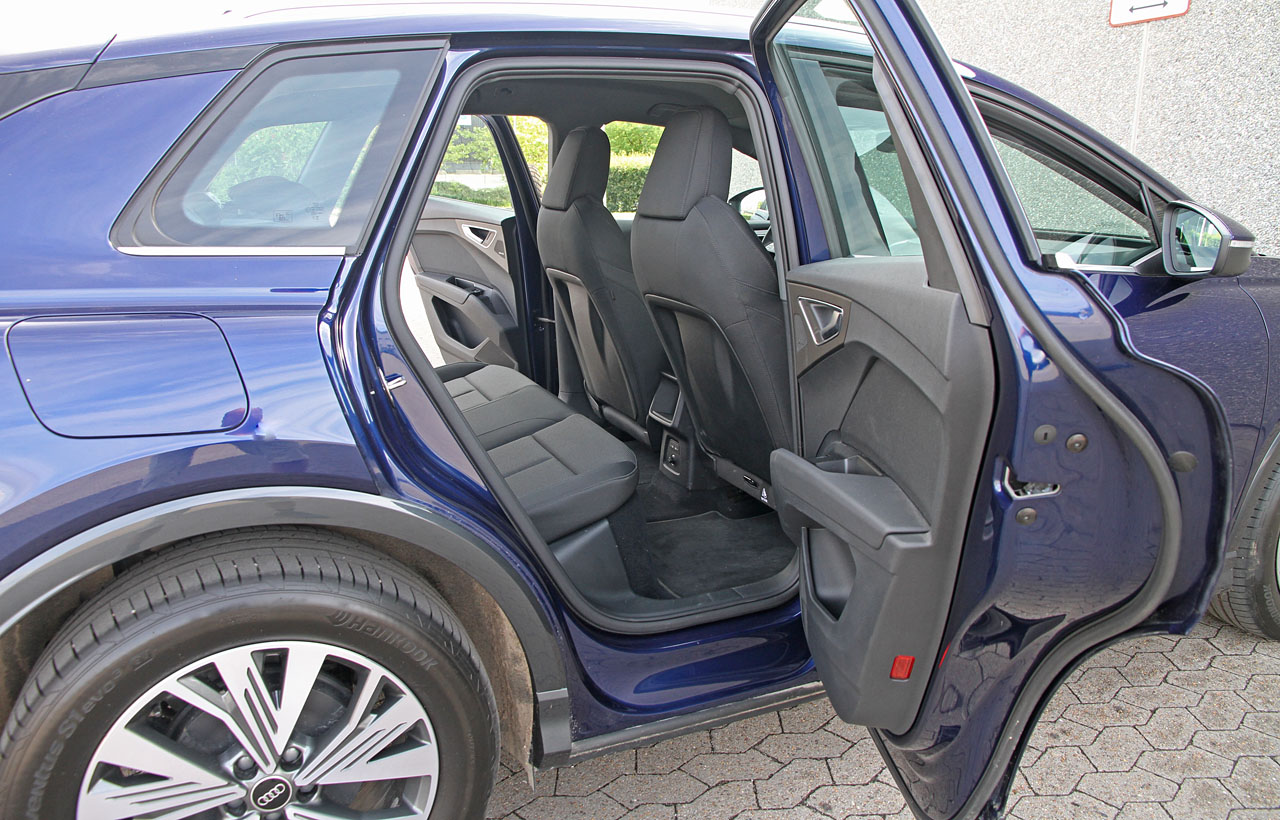 Pladsen er omtrent lige god i Audi Q4 og VW ID.4 – og det vil sige særdeles gæstfri både for og bag. Bagsædet nyder godt af en flad bund uden kardantunnel og modsat mange andre elbiler, sidder du kun med let bøjede ben og god støtte under lårene.