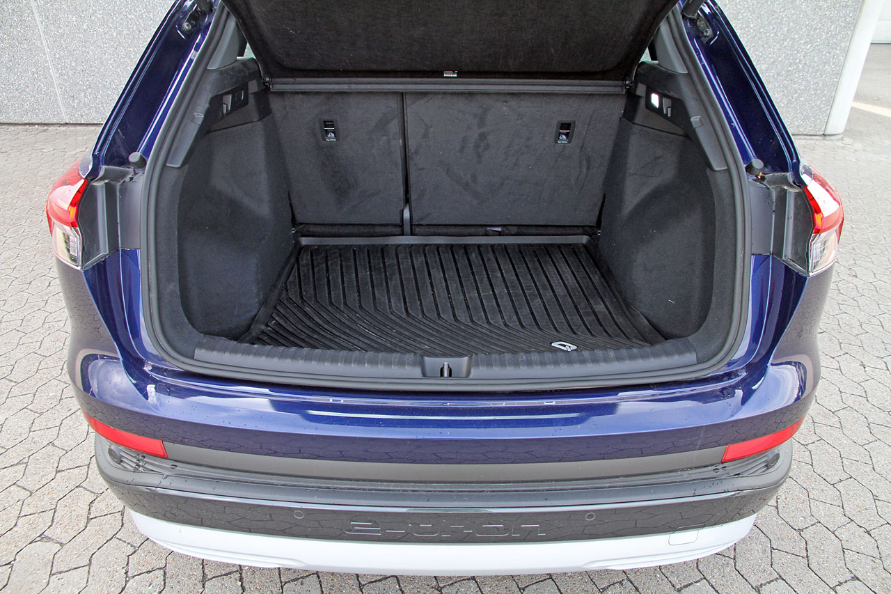 Begge bilers bagagerum er store og regulære, men også med en høj læssekant. Ladekablet kan placeres i et rum under gulvet. Vi vil foretrække et frunk foran, så du altid kan komme til kablet uden at skulle fjerne eventuel bagage først. Pladsen er til det under motorhjelmen, men hverken Audi eller VW udnytter den oplagte mulighed.