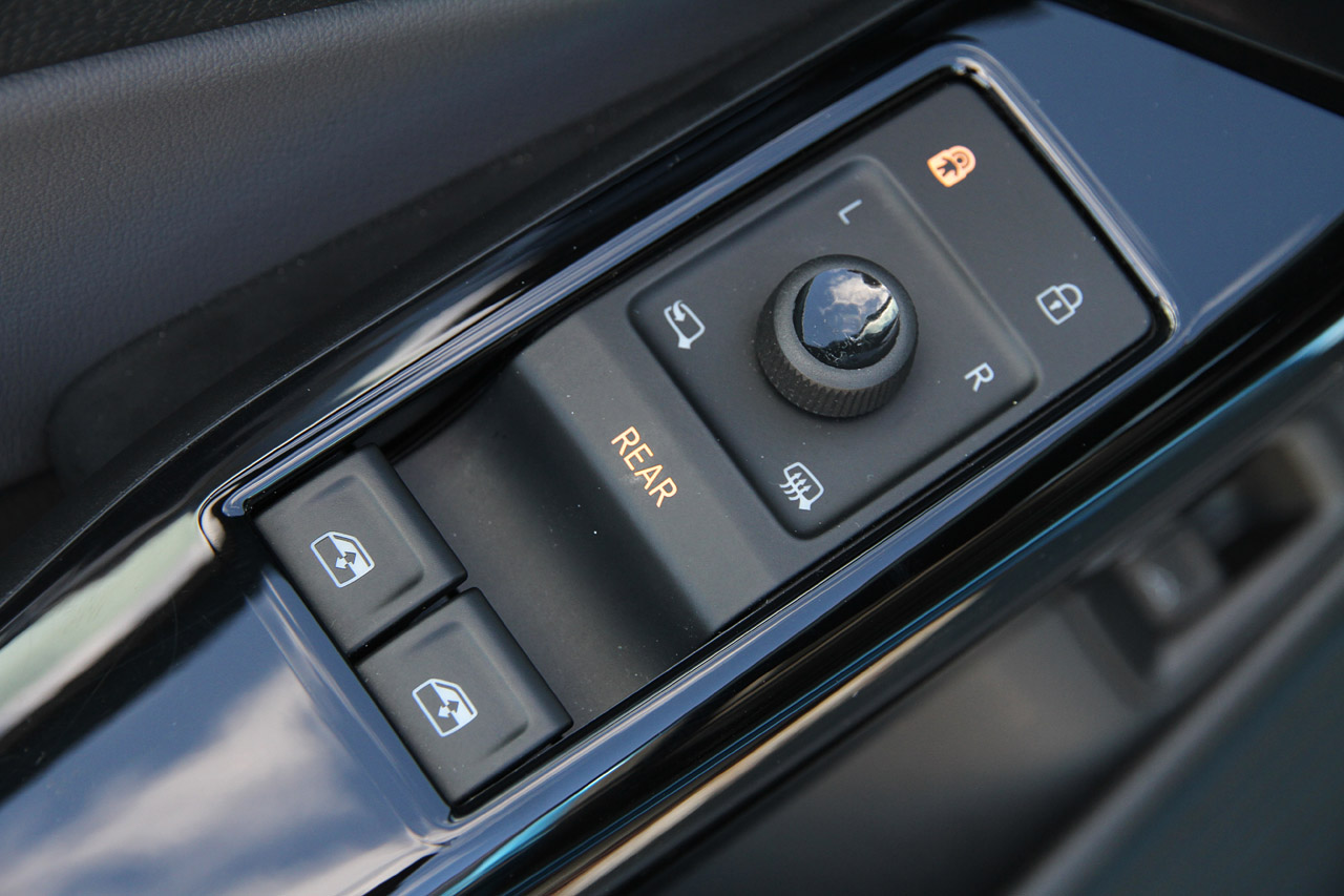VWs spareiver slår fuldt igennem i døren, hvor der kun er to knapper til fire sideruder. Du skal altså først trykke på en knap for at bestemme, om du vil rulle de forreste eller bagerste sideruder ned. Det, skal vi hilse og sige, bliver du pænt træt af...
