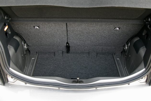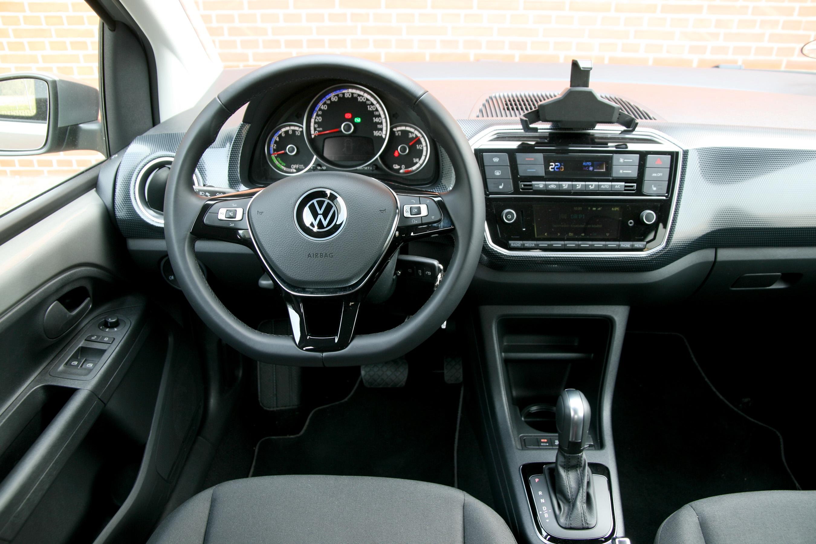 Nogle vil savne muligheden for at kunne trække rattet tættere til sig. Men bortset fra det udmærker VW e-Up sig ved fra forsæderne at virke som en bil, der er en klasse større. Selv høje og langbenede personer har god plads.