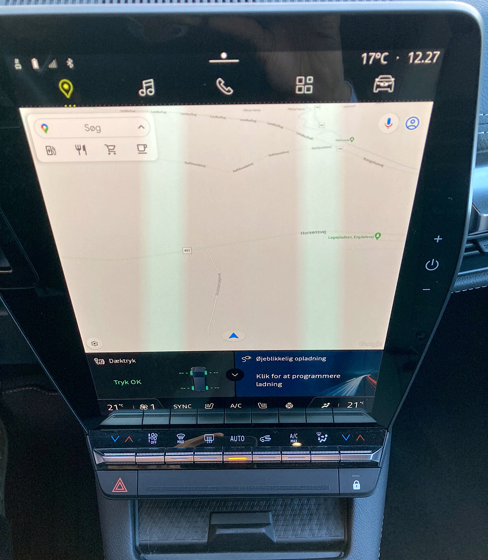 Det bedste er, at regulering af klimaanlæggets temperatur, justering af luftfordeling og aktivering af elbagrude sker med klik-kontakter under skærmen. Varme i sæder og rat gøres ganske vist ved tryk på skærmen, men kun ét tryk, og skærmen reagerer prompte. Jublen vil ingen ende tage - tak for det, Renault.