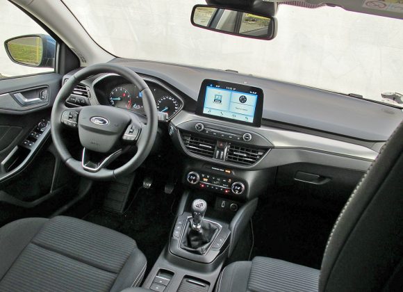 Forgængerens lodrette luftdyser, virvar af knapper og integrede info-skærm er erstattet af en stramt design à la Fiesta. Funktionalitet og ergonomi er i orden og materialer og finish opleves over gennemsnittet i den nye Focus.