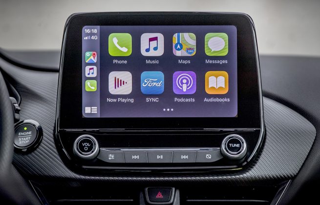 Fords infotainmentsystem Sync 3 indeholder blandt andet navigation, der er trådløs opladning til mobiltelefoner og tilkøber man X-pakken til knap 12.000 kr., får man B&O-lydanlæg, stemmestyring, nødopkald, Android Auto samt Ford Pass Connect med live-opdatering af trafikken og mulighed for at kunne forbinde op til 10 enheder til Wi-Fi i bilen. Betjening af klimaanlæg, elbag- og forrude, varme i rat og sæder foregår heldigvis ved hjælp af separate dreje- og trykknapper.
