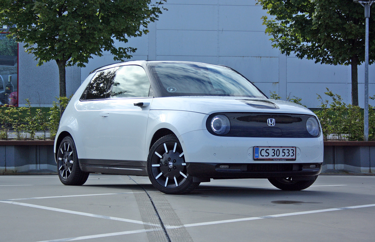 Honda e er Hondas første rene elbil. Og en modig en af slagsen. Som så mange gange før går japanerne andre veje end konkurrenterne. De satser på en lille, men lækker bybil med beskeden rækkevidde, der til gengæld – relativt - hurtigt kan lades op. Honda e er en fem-dørs hatchback i miniklassen, der har plads – og sikkerhedsseler – til fire personer og lidt bagage. Honda e findes foreløbig kun i to udstyrsniveauer til henholdsvis 277.100 kr. for basisudgaven med 136 hk og 299.500 kr. for Advance-udgaven med 154 hk, som vi tester her. Rækkevidden er for begge udgaver opgivet til 222 km i henhold til WLTP-normen, men testbilen er udstyret med 17 tommer fælge, der reducerer rækkevidden til 210 km på en opladning. En Honda ladestander koster 7.800 kr. plus installation.