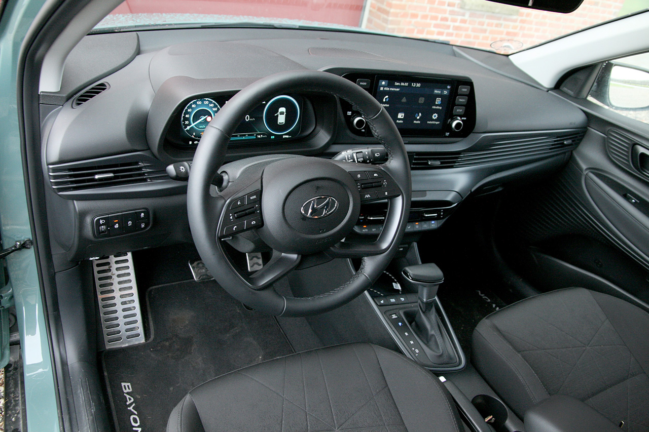 Trods lighederne med Kona står Bayon som nævnt på den nyere i20-platform, og bag rattet er Bayon også meget lig i20. Den har dog lidt bedre støttende forsæder, omend man også i Bayon skal kigge langt efter lændestøtte.