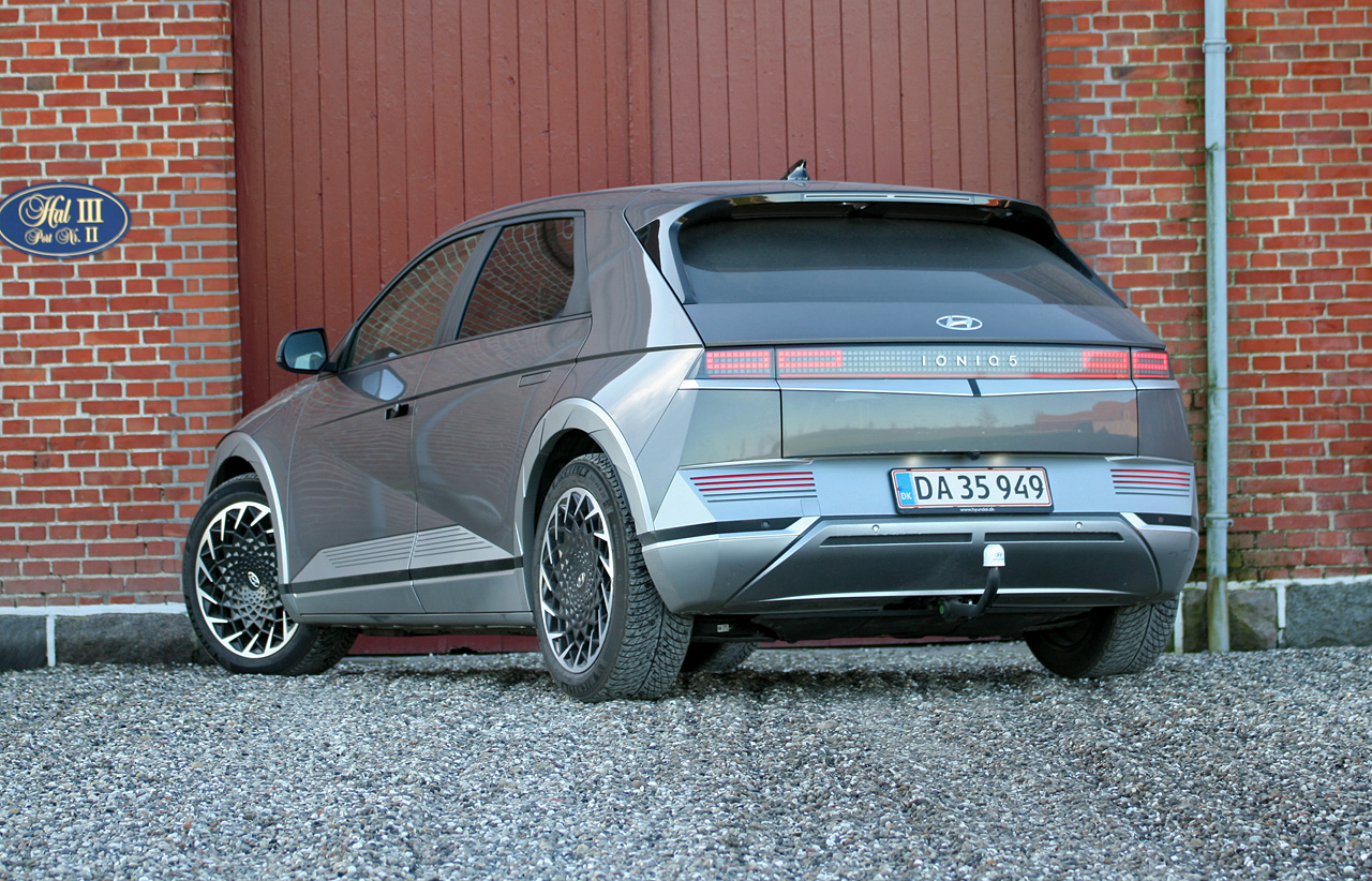 Hyundai Ioniq 5 er Årets Bil i Danmark 2022 og søsterbil til Kia EV6, som Hvilkenbil tidligere har testet. Teknikken i de to er den samme, men visuelt er forskellene store. Ioniq 5 er lettere futuristisk og funky, men på en måde alligevel klassisk (stor) hatchback med fem døre og stor bagklap, hjulene næsten ude i hjørnerne og en lille hækspoiler.