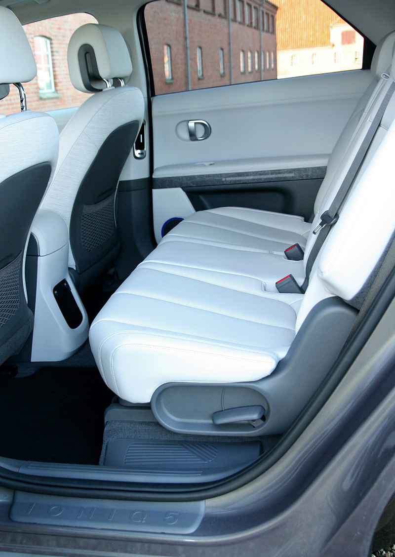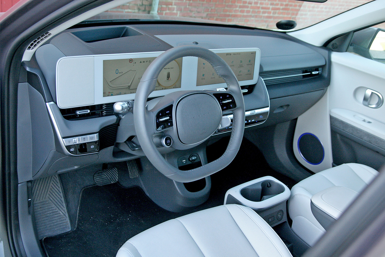»Den ligner lidt en amerikanerbil,« sagde en af sønnerne til mig, da han første gang kiggede ind. Og han har en pointe, for der er lidt sofastykke over Ioniq 5. Man sidder blødt og komfortabelt i de multijusterbare sæder, højt som i en crossover, og fraværet af en høj barriere mellem fører og forsædepassager bidrager til amerikaner-sofastemningen.