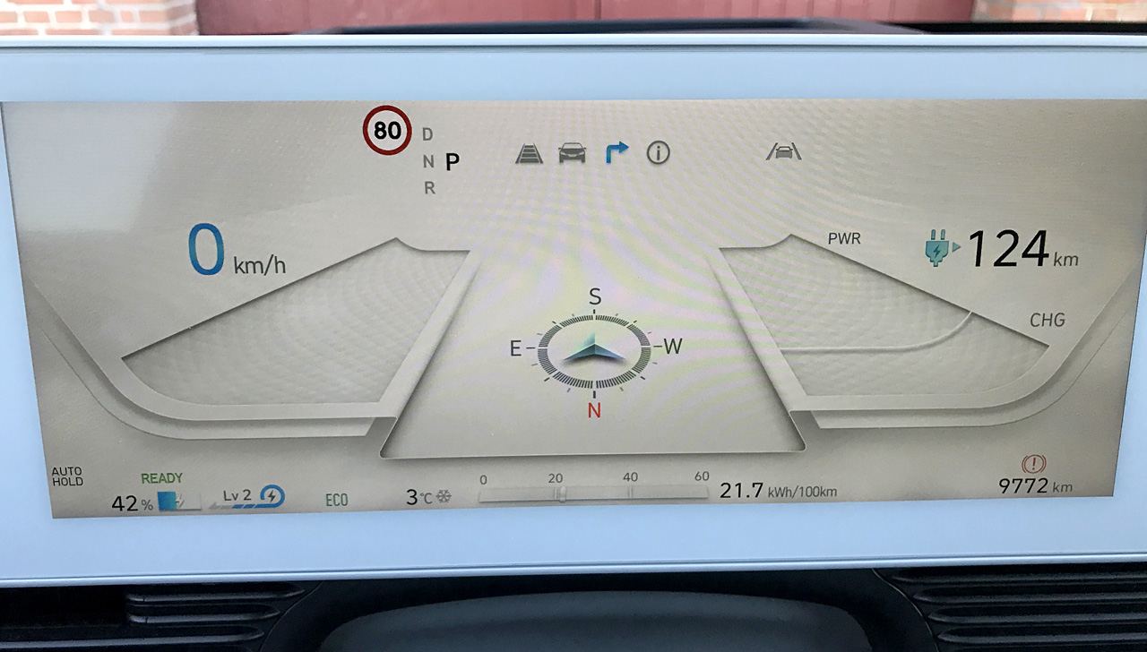Opladning af batterier er en følsom sag, da først og fremmest temperaturer spiller ind, men 800 volts-teknikken kan mærkes. Jeg har tidligere testet bl.a. Audi Q4 og Skoda Enyaq, der begge har 400 volts-teknologien, og lynladning af Ioniq 5 er mærkbart hurtigere. En to plusgraders aften, hvor batteriet via navigationsanlæggets indstillinger var forberedt på den kommende lynladning, gik det klart mere kvikt, end jeg tidligere har oplevet under samme forhold.