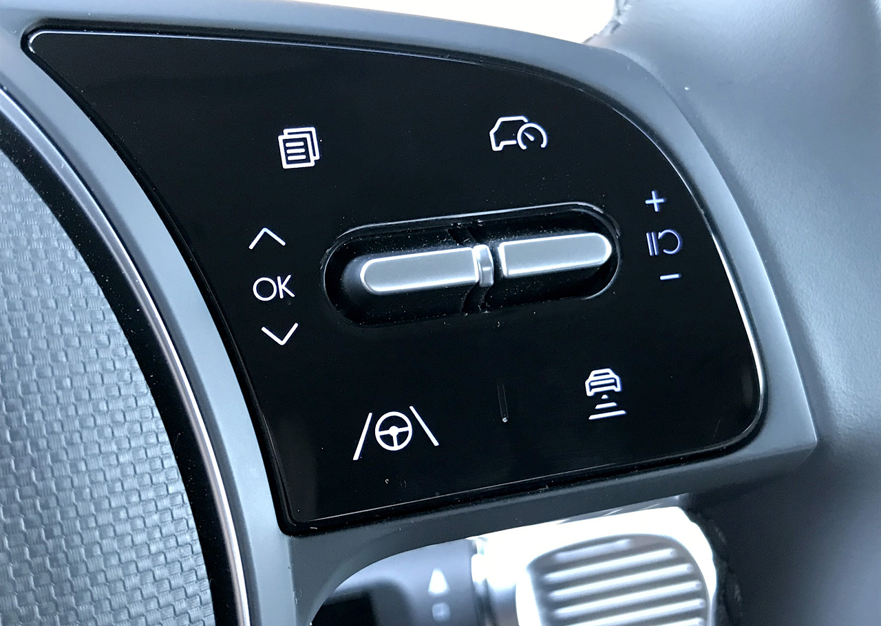 Gearvælgeren er en solid drejeknap på højre side af rattet, og den fungerer fint. Betjeningen er nem, og den adaptive fartpilot giver sammen med sikkerhedspakken til 7.000 kr., hvor man får en velfungerende følgefunktion med, en super behagelig oplevelse af bilen.