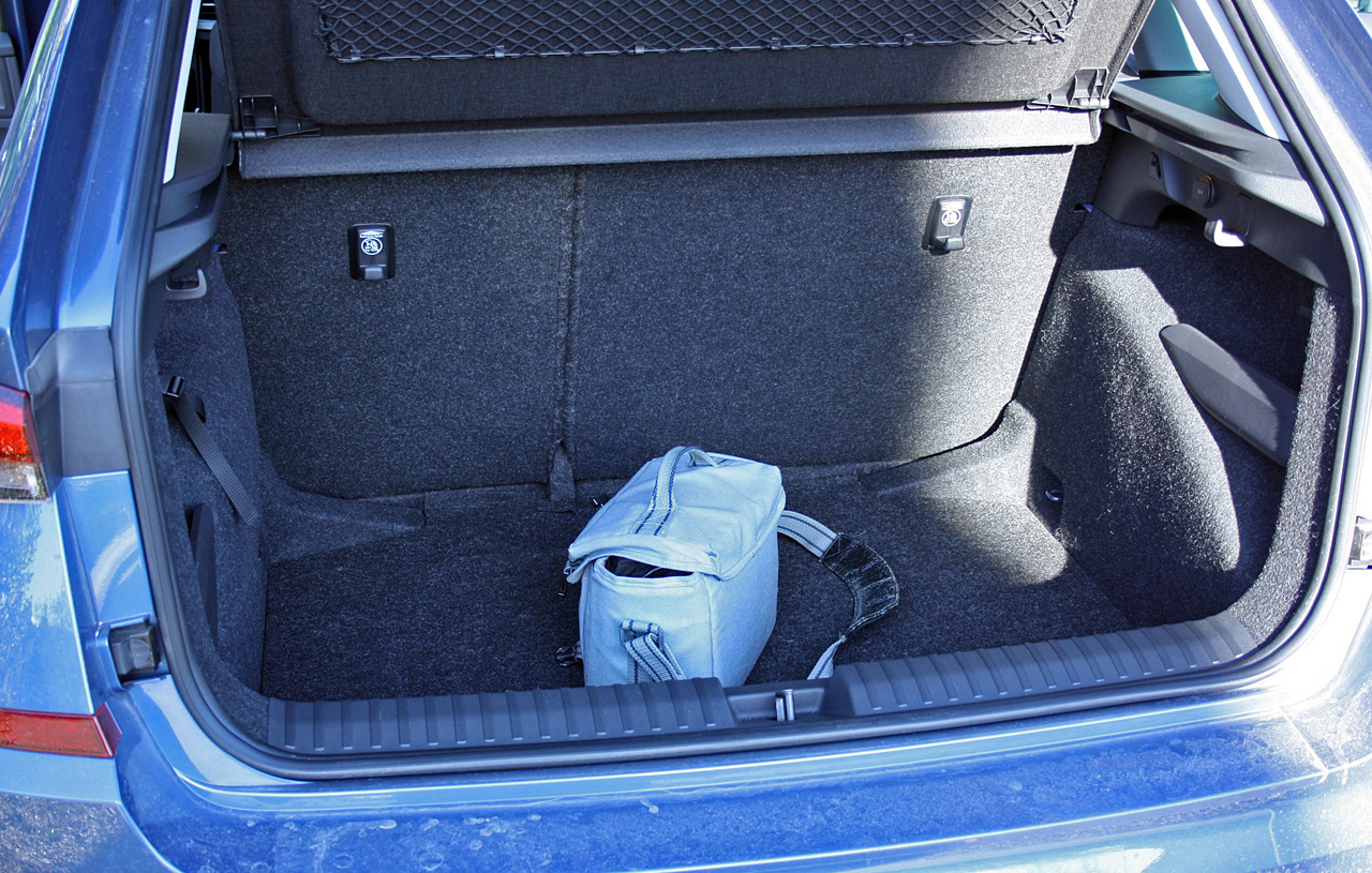 Som lidt af et ’raumwunder’. Kamiq er absolut den mest rummelige SUV i miniklassen. Her kan de fleste familier finde sig til rette. At akselafstanden er øget med næsten 10 cm i forhold til VW T-Cross og Seat Arona, mærker man især på bagsædet, hvor to voksne og et barn sidder særdeles godt og har friskluftdyser men ikke opladningsstik. Benpladsen er ganske enkelt imponerende – og faktisk bedre end i mange mellemklasse SUV’er. Målt mellem akslerne er Kamiq endda et par cm større end storebror Karoq. Bagsædet er ikke længdejusterbart, som i f.eks. Renault Captur. Den ekstravagante bagsædeplads stjæler dermed permanent lidt plads i bagagerummet, der er på 400 liter. Det er en anelse mindre end konkurrenterne, men uden betydning i praksis.