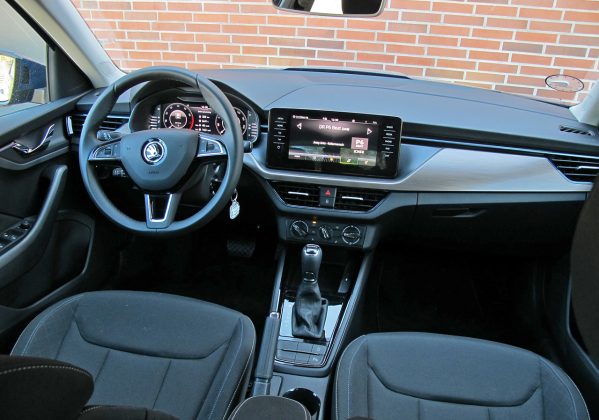 Der er mange ting at glæde sig over bag rattet i Kamiq. Først og fremmest en flot finish og et gedigent materialevalg. Samtidig er ergonomien – forholdet mellem sæde, rat og pedaler – som vi er vant til fra denne kant i orden. Førersædet er klassisk for VW-koncernen velformet og fast i polstringen og støtter udmærket. Typisk for SUV/crossover-klassen sidder du ca. 10 cm højere over vejen end i en VW Polo, og har dermed bedre udsyn. En 6,5 tommer touchskærm uden Apple CarPlay er standard, men testbilen er opgraderet til en 8 tommer knivskarp skærm, som vi anbefaler sammen med SmartLink (for Apple CarPlay/Android Auto) til i alt ca. 4.000 kr. Denne testkører nikker anerkendende til, at varmeapparat, sædevarme og el-bagrude styres med klassiske knapper og ikke via touchskærmen, som fjerner førers opmærksomhed fra trafikken.