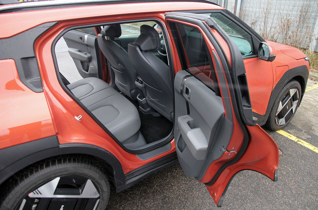 Bortset fra afmålt benplads på bagsædet – EV3 er beskedne 4,3 meter lang – er der god plads og en oplevelse af luft både for og bag. EV3 rummer fint kernefamilien på fire, og med fladt gulv kan der også være tre på bagsædet.