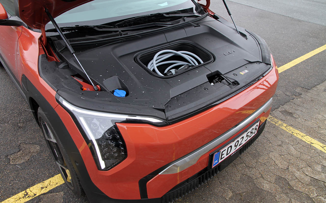 Bagagerummet er kvadratisk og praktisk som en mindre kummefryser. Foran er endda et lille frunk, der både rummer ladekabel og mormorlader på en gang. Så er de af vejen - sådan!
