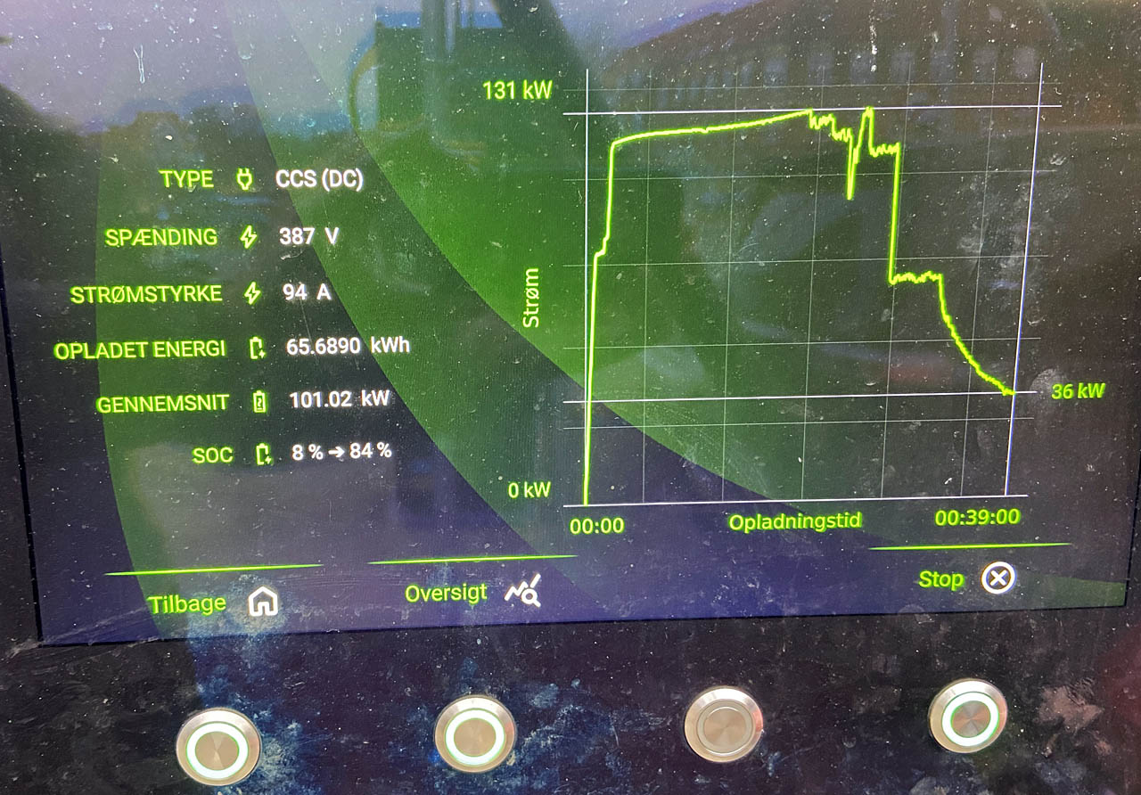 Opladningstid: 31 minutter (10-80 pct. DC), 7,5 timer (0-100 pct. ved 11 kW AC)