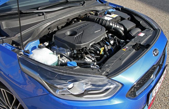 1,6 liters motoren med 204 heste understreger ProCeeds semi-GTI attitude. Maskinen er mere magtfuld end varmblodig, og til daglig sætter du bare pris på dens elastiske måde at trække på fra lave omdrejninger. Forklaringen er, at gearingen er relativt lav, hvilket omvendt gør, at du kører med forholdsvis mange omdrejninger på motorvejen. Kia har tydeligvis arbejdet med lyden, der får lov at ligge som en underliggende brummen i kabinen. OK for os – men Sport-knappen, der elektronisk skruer op for soundtracket med kunstig motorlyd i højttalerne, virker som en lidt tarvelig gimmick i vores ører. Kia lover 13,5 km/l. Lidt uambitiøst anno 2019. Lad det være en ringe trøst, at vi næsten nåede det med et snit på 12,2 km/l.