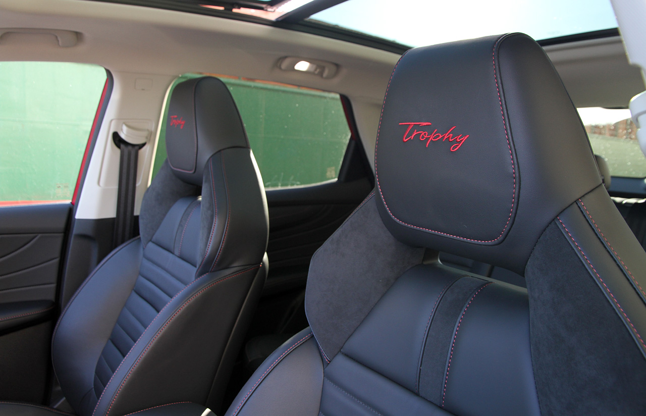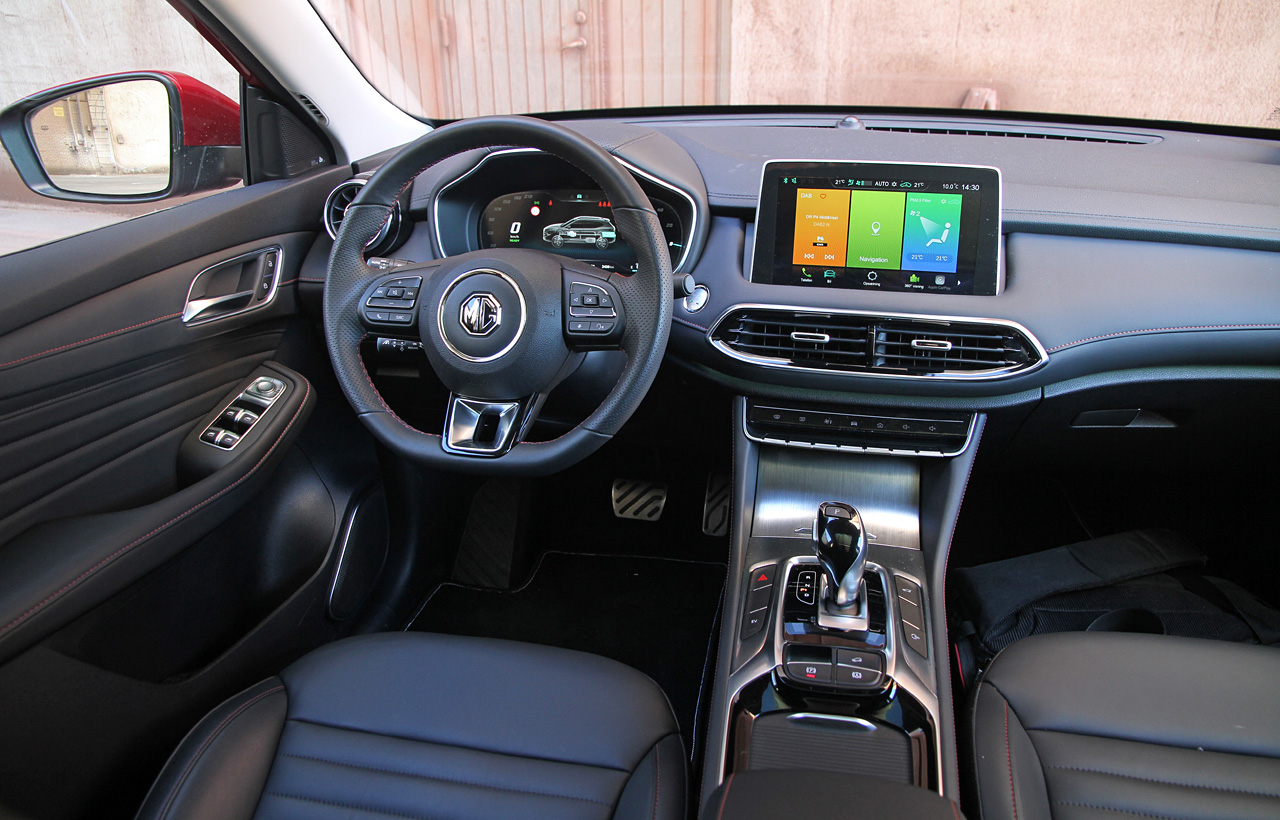 Solid, nærmest semilækker finish er den store overraskelse i MG EHS. Her er blød plast, pæne samlinger og fikse syninger, der får nye VW-modeller til at fremstå lettere rustikke. Karrosseriet virker præcist samlet, dørene smækker med dæmpede drøn, og alle knapper klikker præcist og tillidsvækkende som i en anerkendt japaner. Bagsædet er rummeligt, men du sidder lavt og dermed på spidsen af bagdelen – det er ikke rart på langturen. Bagagerummet har ingen læssekant, for gulvet er højt placeret. Der er et lille kælderrum til ’mormorladeren’, men det er ikke stort nok til det rigtige ladekabel, der må ligge i en taske i bagagerummet. Det blev altså heller ikke kineserne, der fandt en løsning på dette lavpraktiske problem...