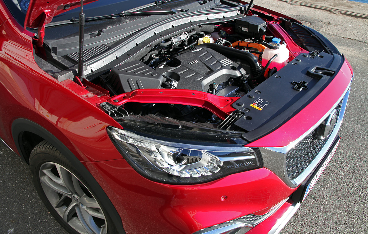 Det er som om den komplicerede 10-trins gearkasse, der består af et traditionelt seks-trins automatgear i et nogle gange disharmonisk samspil med et fire-trins planetgear, ’hænger’ mellem to trin. Den anstrengte motorlyd ved høje omdrejninger er der heller ikke meget musik i. Hvad værre er, så får MG for lidt ud af eldriften, bl.a. fordi benzinmotoren skal køre for at skabe varme i kabinen. Trods et relativt stort batteri på 16,6 kW og flittig brug af ladekablet nåede vi kun et snitforbrug på 12,5 km/l. Tvinger du EHS til ren eldrift, er batteriet fladt efter 40 km. Begge dele er for lidt. Kinesiske MG får endnu mindre ud af elektrificeringen end deres mere hybrid-erfarne konkurrenter.