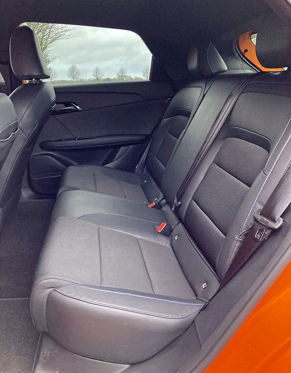 Plastikken ser fin nok ud, men den er hård og vinder ingen stjerner i lækkerheds-disciplinen. Pladsen på bagsædet er godkendt, men af en eller anden grund er der ingen nakkestøtte på midterpladsen. Til gengæld er der en sikkerhedssele.