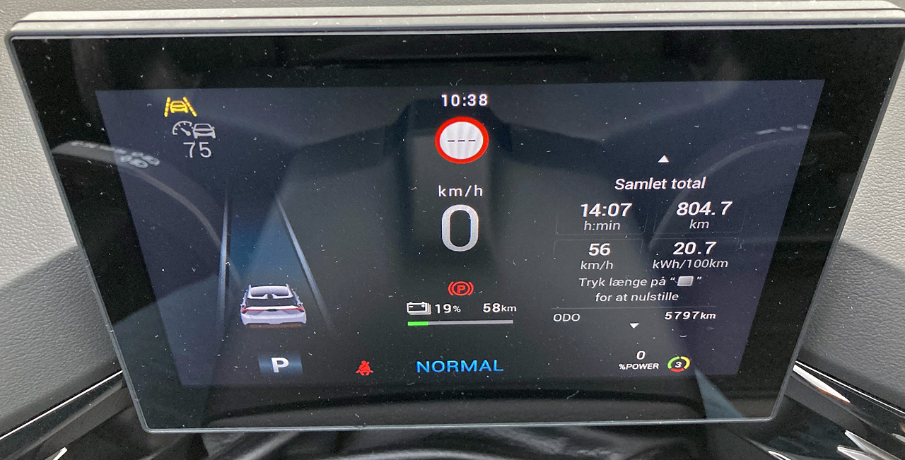 Skiltegenkendelsen blev også deaktiveret - i de fleste biler vil det insisterende “her må du køre 80 km/t”-skilt holde op med at blinke i displayet efter fem-ti blink, når man overskrider hastigheden (f.eks. sætter fartpiloten på 85 km/t). Men ikke i MG4 - her blinker den lystigt og permanent videre… hold nu op!