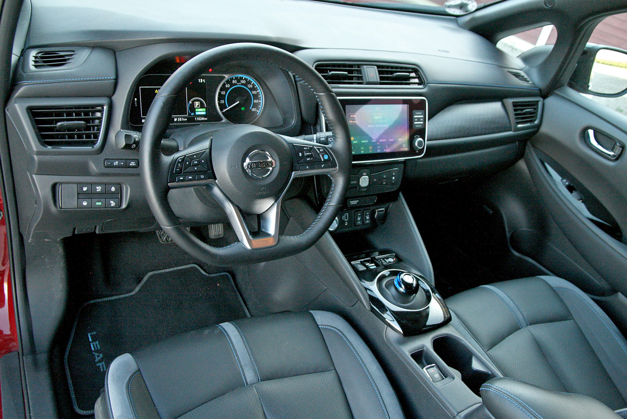 Med 62 kWh-batteri er der masser af kræfter i Leaf+, og hvis man vil misbruge strøm, kan man sprinte fra 0 til 100 km/t på under syv sekunder. Med en fuldt opladet Leaf+ og en rækkevidde på 385 km er det kun en mild udfordring at køre mellem eksempelvis Danmarks to største byer. Opskriften er omtanke og planlægning. Omtanke, fordi man skal undlade at høvle afsted med 130 km/t, men tålmodigt konsumere motorvejskilometer med max 110 km/t. Planlægning, fordi man skal vide, hvor der kan lades op og håbe, at den offentlige 50 kW-ladestander ikke lige er optaget, når man er fremme.