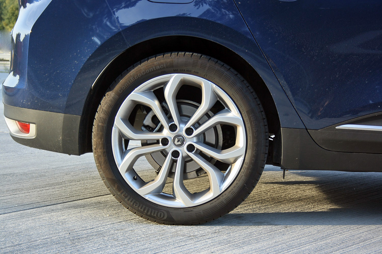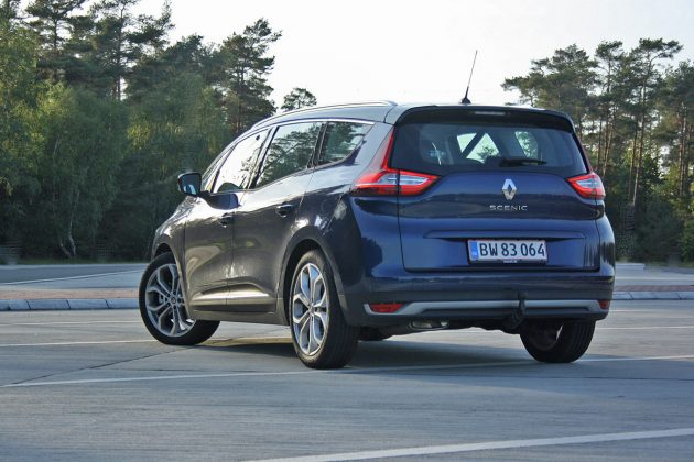 Som det den er - en stor bil. Trods de smukke og strømlinede former kan sidevinden få tag i bilen, og der er også noget rumlen fra den store kabine. Men ellers er Grand Scenic velkørende på de enorme 20 tommer fælge, der fuldender et flot design. Ved ujævn vejbelægning kan det dog godt mærkes på komforten, at de smalle lavprofildæk ikke fjedrer så meget. Styringen er letgående men ret steril. Alt i alt er Renault Grand Scenic en komfortabel og behagelig bil at manøvrere rundt, og til daglig tænker man sjældent over, at der er et helt varerum bagude. Det 7-trins automatgear af dobbeltkoblingstypen passer fint til bilen og øger komfortoplevelsen. Det ville vi prioritere ,selv om merprisen af uransagelige årsager er øget fra 21.000 til 26.000 kr. efter indførelsen af den nye brændstofnorm WLTP.