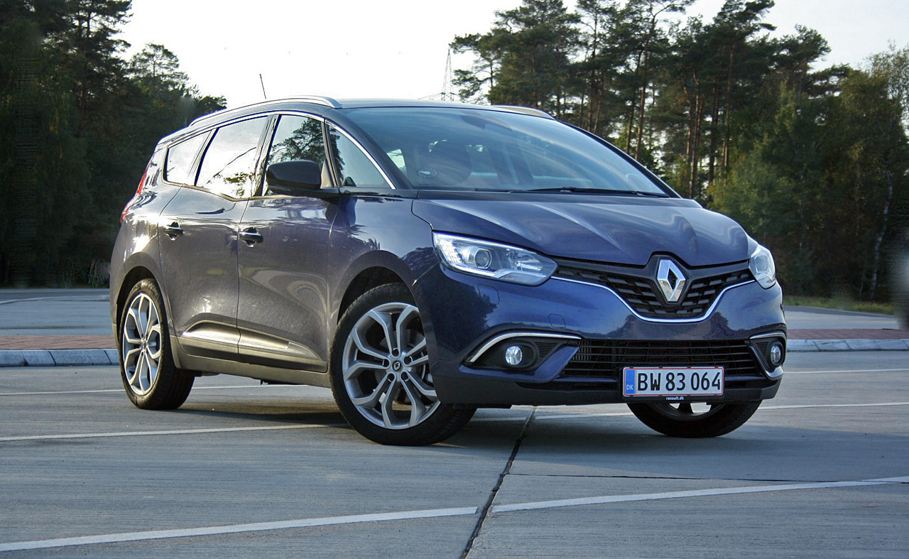 kke så mange. Fx fås Kia Carens med 135 hk benzinmotor og syv sæder for 284.000 kr. - inkl. syv år/150.000 km garanti. Mest oplagt er en anden franskmand, der faktisk er lidt mere ‘Grand’ inden i, nemlig Citroën Grand C4 Spacetourer. Det er også en særdeles fleksibel familie-flytter med lækker instrumentering via to store skærme. Den er helt op til 50.000 kr. billigere end Renault'en. Citroën'en savner dog en del af det aktive sikkerhedsudstyr, som Grand Scenic byder på. Ford har Grand C-Max med skydedøre, der fås med 125-150 turbobenzinheste og Titanium-udstyr til priser fra 260-314.000 kr. VW Touran har syv sæder som standard, og er på nogle områder mere gennemtænkt indendøre, men bestemt ikke billigere end Grand Scenic. Med 150 hestes turbobenziner og 7-trins DSG løber Touran op i 335-358.000 kr.
