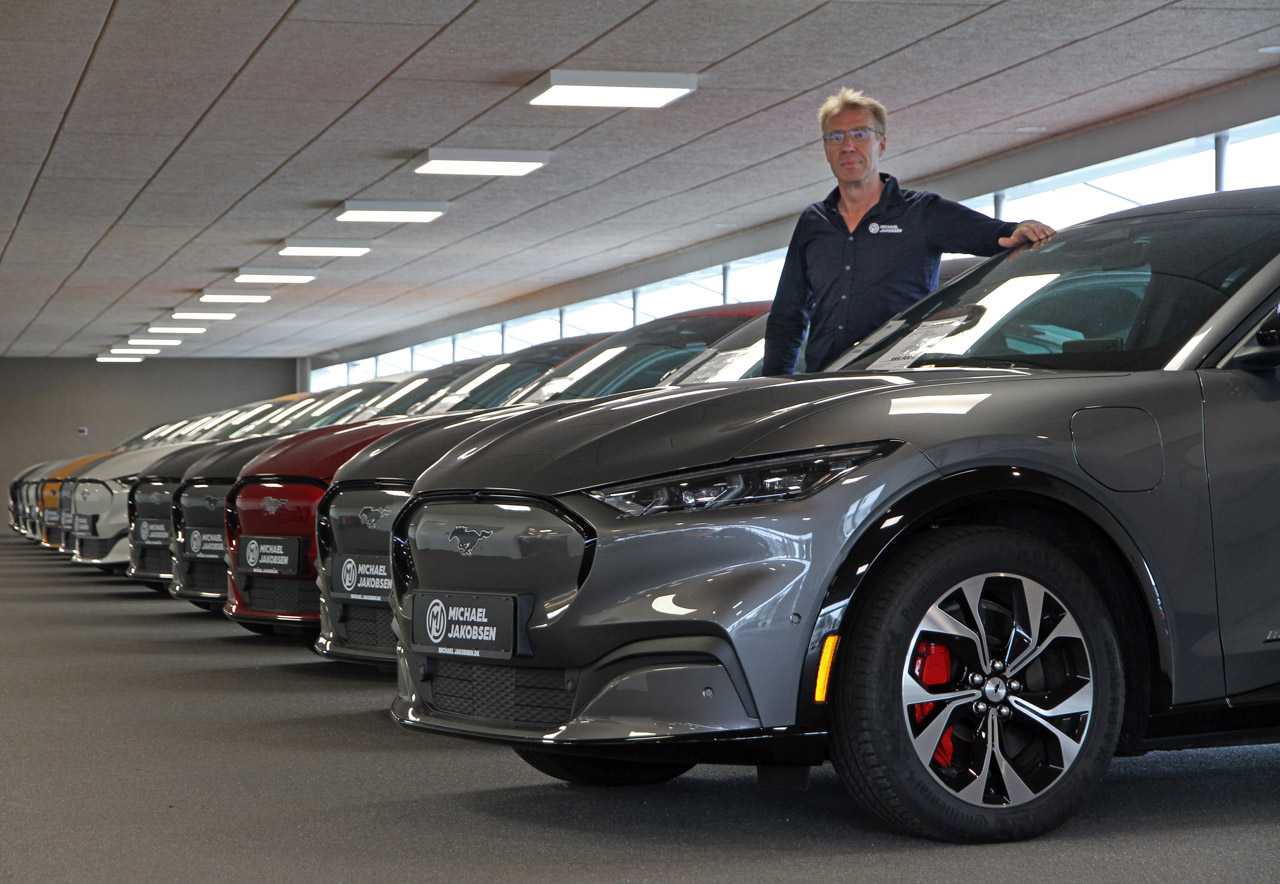 Michael Jakobsen er blandt Danmarks største forhandlere af let brugte Ford. I dag sælger han udelukkende elektriske Mustang Mach-e.