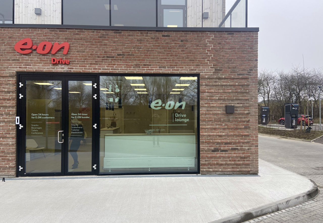 Sammenlignet med en klassisk tankstation minder E.ON's Omtankestation mere om loungen i en mindre lufthavn. Mens udearealerne ligner det, vi efterhånden kender så godt fra Clevers mange ladestationer.
