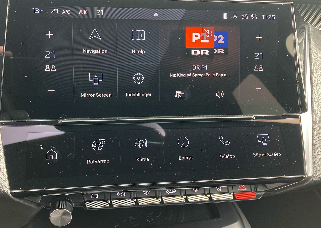 Den store, klare og rimeligt hurtigt reagerende infotainmentskærm indeholder en del menuer og undermenuer, men fem programmerbare genvejstaster i bunden af skærmen letter adgangen til de foretrukne og mest benyttede funktioner. Det fungerer fint.