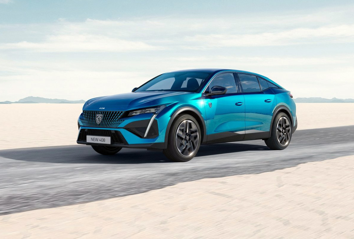 Som 308 fås 408 i første omgang som ladehybrid med enten 180 eller 225 hk. Basismotor bliver en trecylindret turbobenziner på 1,2 med 130 hk. Alle med otte-trins automatgear som standard. Lidt senere følger en fuldt elektrisk version, som Peugeot dog endnu ikke oplyser data på. Vi gætter på, at den får et batteri på 64 kWh med en rækkevidde omkring 450 km.