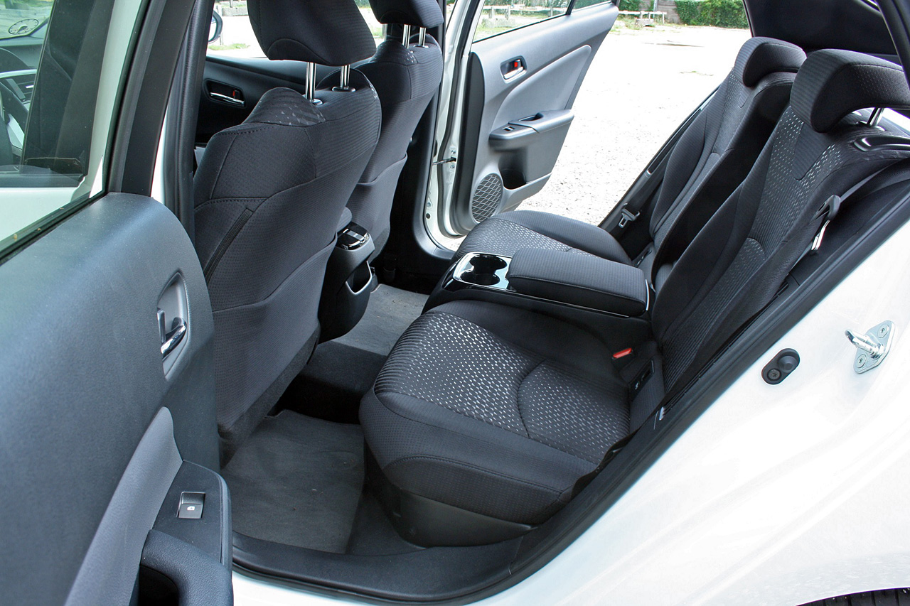 Kabinen i Prius Plug-in er på én gang et fredfyldt fristed og samtidig lidt for aparte til at tjene som familiebil. Lad os straks fremhæve det positive; Kabinen er komfortabel og ekstremt støjsvag. Selv med benzinmotoren på arbejde. Ser vi på minusserne starter vi lidt bagfra. Bagagerummet i plug-in-udgaven af Prius er reduceret med 142 liter i forhold til Prius Hybrid, da bunden skal give plads til batteriets 145 liter volumen. I praksis er bagagerummet derfor hverken særligt rummeligt eller anvendeligt. Bagsædet er af en eller anden grund - måske i erkendelse af at Prius faktisk alligevel er lidt for smal til tre på bagsædet - kun designet til to passagerer. Til gengæld sidder de to på bagsædet dejligt dybt og komfortabelt med fornuftig benplads, fralægnings- og opladningsmuligheder og kopholdere. Det eneste vi savner er friskluftdyser til bagsædefolket, men klimaanlægget har dog en separat bagsædezone.