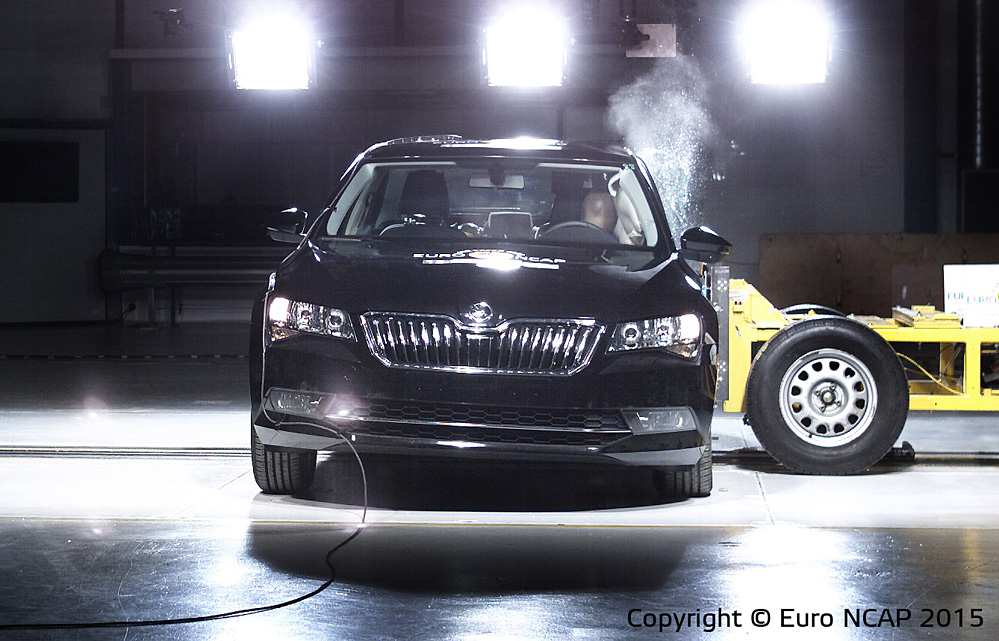 Crashtest: Mens der er topkarakter til Skodas flagskib Superb, må Hyundai i20 uden nødbremse nøjes med fire eller tre stjerner.